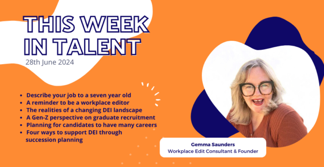 This Week in Talent: Gemma Saunders signs off with a reminder that we are all workplace editors, the realities of a changing DEI space, a Gen-Z perspective on graduate recruitment, and more!