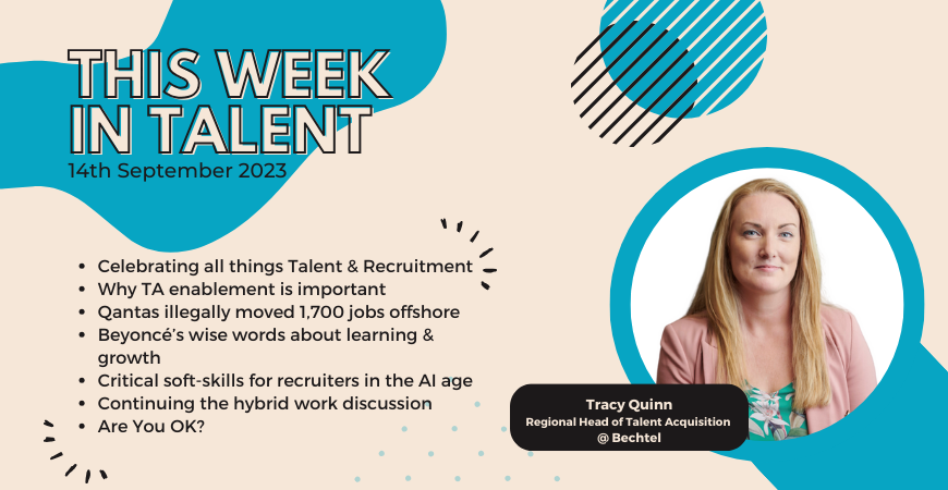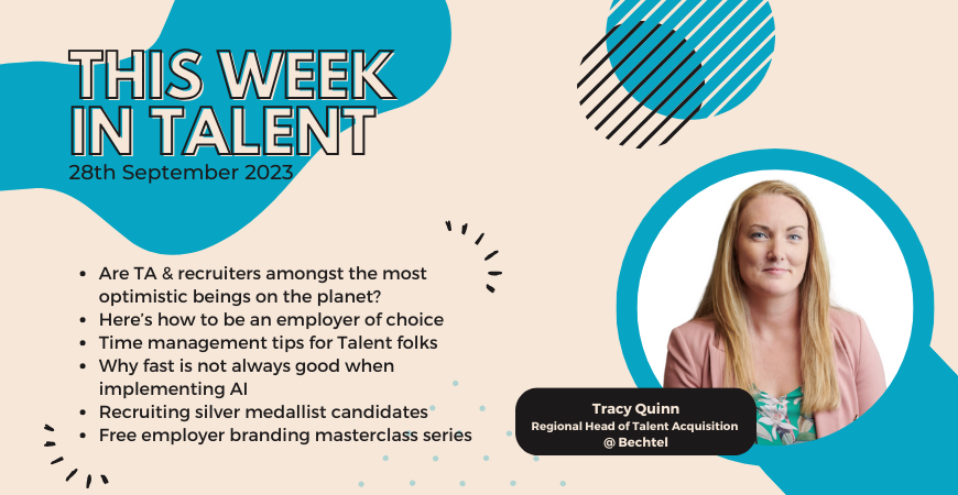 This week in Talent: Katie's advice for the next generation of TA - lean into change, the pros and cons of revealing questions before an interview, why we need to rethink employer brand, streamlining our TA processes, building a high performing team, and more!