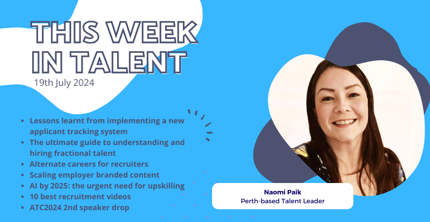 This week in Talent: Naomi shares her lessons learned in implementing a new applicant tracking system, a look at understanding fractional talent, and a think about alternative careers for recruiters. She looks at the ethics of AI, the 10 best recruitment videos and a look at ATC2024 2nd speaker drop.