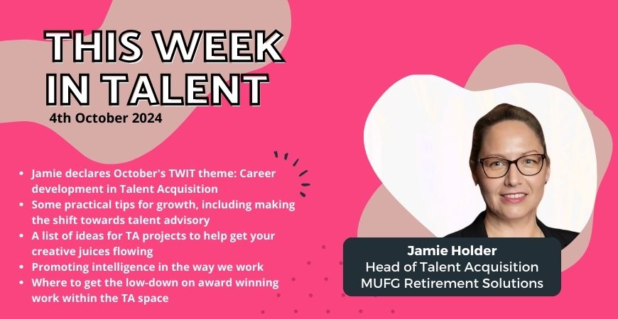 This Week In Talent: Jamie talks all things leadership within the TA space, including talking career conversations, how (and when) to delegate and practical things that leaders can do to develop the confidence and skills in their team. Whether you’re new to leadership, a seasoned veteran or aspiring to lead one day – this TWIT is for you.